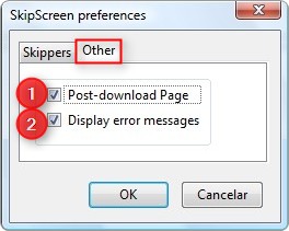 Na aba "Other" você habilita ou desabilita a página que aparece ao final do download (1) e as mensagens de erro (2) — entretanto, é uma boa ideia deixar a última opção habilitada, para saber se algo não ocorrer como o esperado.